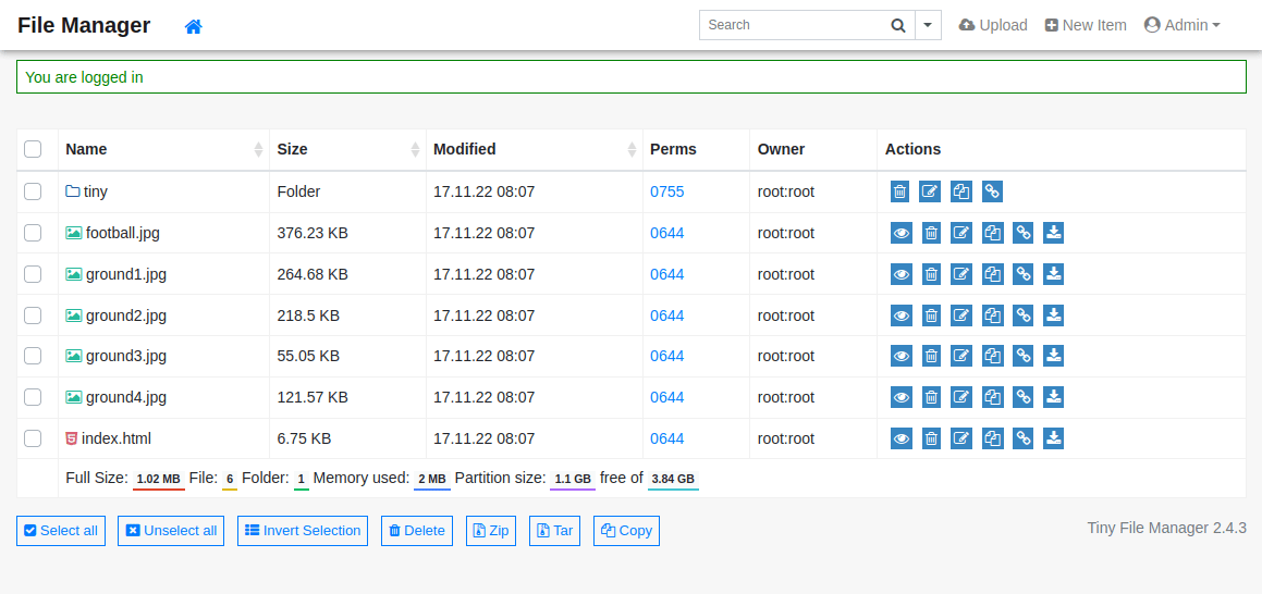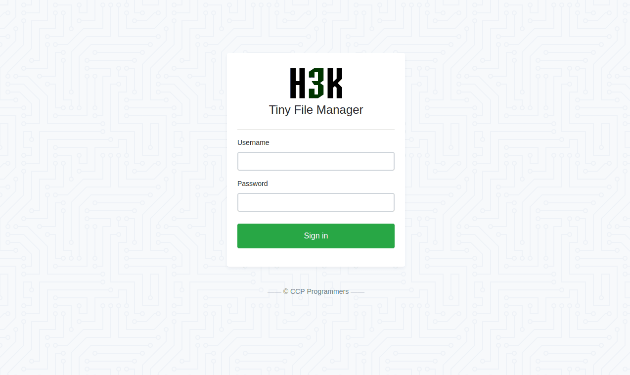 Searching up Tiny File Manager, we find these default credentials: